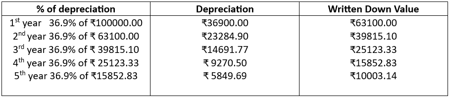1. As depreciation is calculated at fixed percentage of written down value, depreciable cost of the asset cannot be fully written off. The value of asset can never be zero.