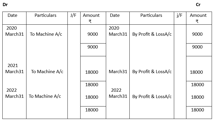 Based on the data provided in Example 1, let us now construct Machine account, Provision for Depreciation Account and Depreciation Account for the first three years supposing that Provision for Depreciation account is maintained by the firm.