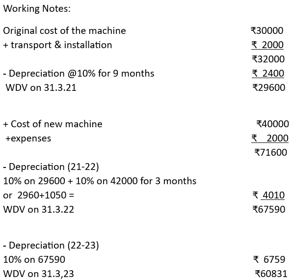 4. Depreciation for 2019-20 = ₹18000 x 6/12