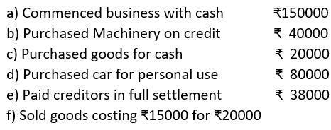 e) ₹ 38000 paid to creditor in full settlement of ₹ 4000 which means that ₹ 2000 is gained and added to capital as profit.