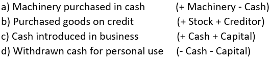 a) Drawings by cheque will reduce capital and reduce Bank (Assets)