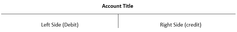 An Account, abbreviated as A/C, is a record of business transaction. The simplest form of an Account looks like the English letter ‘T’. It is divided into two parts – the left side of the ‘T’ is Debit (abbreviated as Dr.) and the right side is Credit (abbreviated as Cr.). When recording each transaction, the total amount debited must be equal to total amount credited. In accounting format – debit and credit indicate whether the transactions are to be recorded on the left-hand side or right hand side of the account.