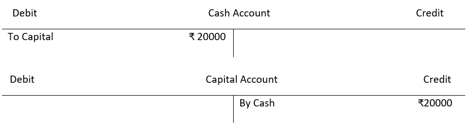 The transaction increases cash in one hand and increases capital on the other. As per rules increase in asset (cash+ is debited and increase in capital is credited. The transaction will be recorded as follows: