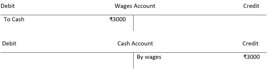 Wages is an expense and increase in expense has to be debited. Cash is an asset which will decrease for paying wages so, cash a/c will be credited.