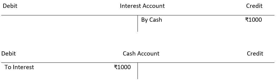 Receiving interest is gain and any addition of gain is credited as it adds up to capital. Interest is received in the form of cash which is an asset. Addition to asset is debited.