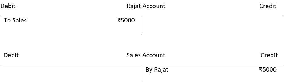 Sale of goods is Revenue A/C, any increase in revenue is credited. Sales account will be credited. The transaction increases debtor which is an asset and Rajat as debtor has to be debited.