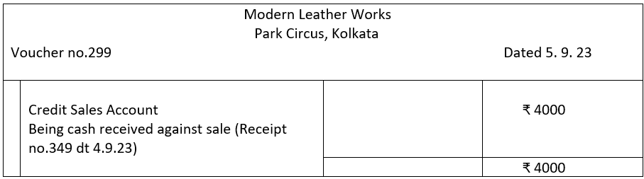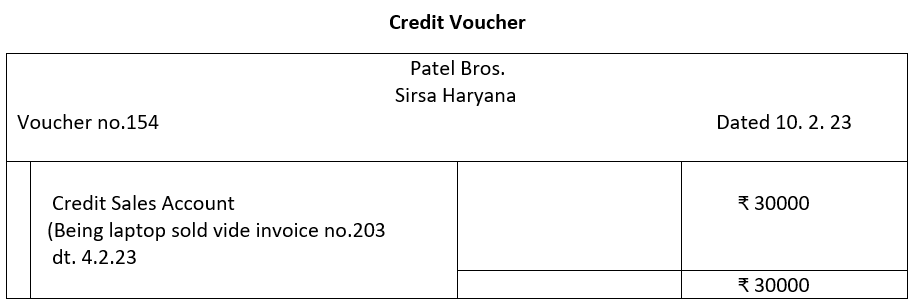 Example of Credit voucher (for cash sale)- in the books of Patel Bros.