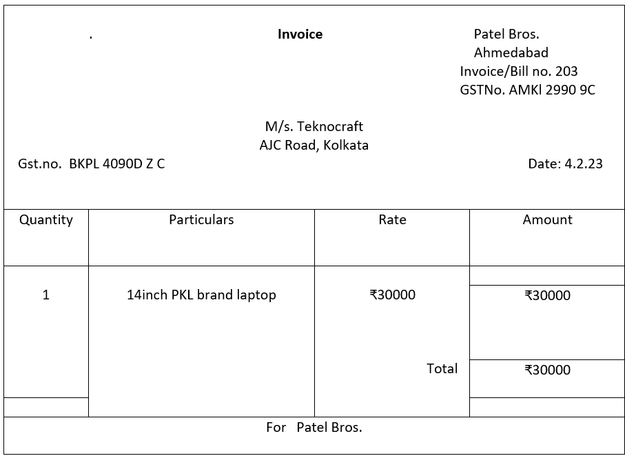 Transaction 1 M/s Patel Bros. sells a 14-inch laptop to M/s Teknocraft for ₹ 30000