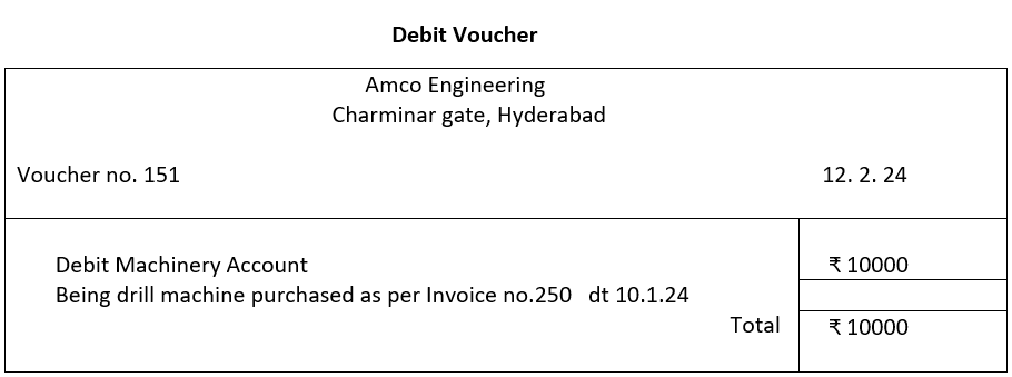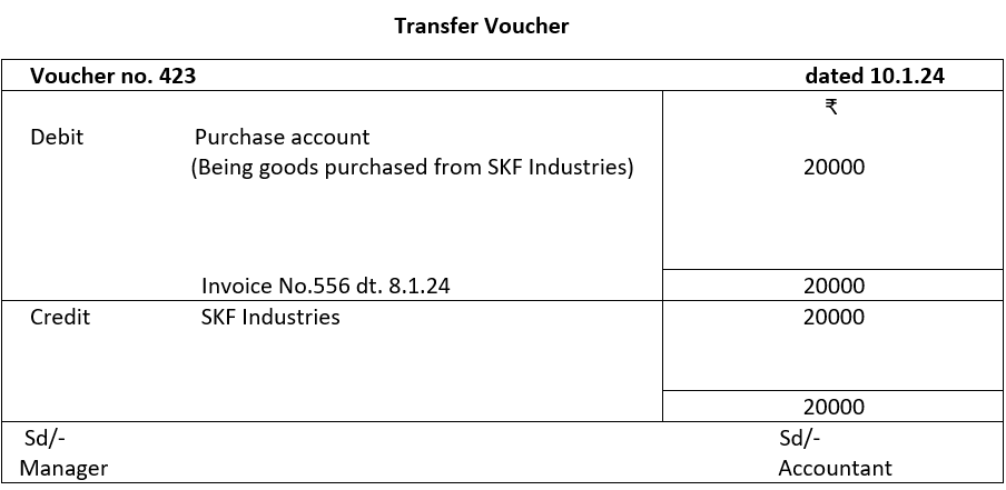 Transfer Vouchers (non-cash vouchers): These vouchers are prepared to record Credit Purchase, Credit Sale, goods returned to party, goods returned by party, sale of old machinery etc.