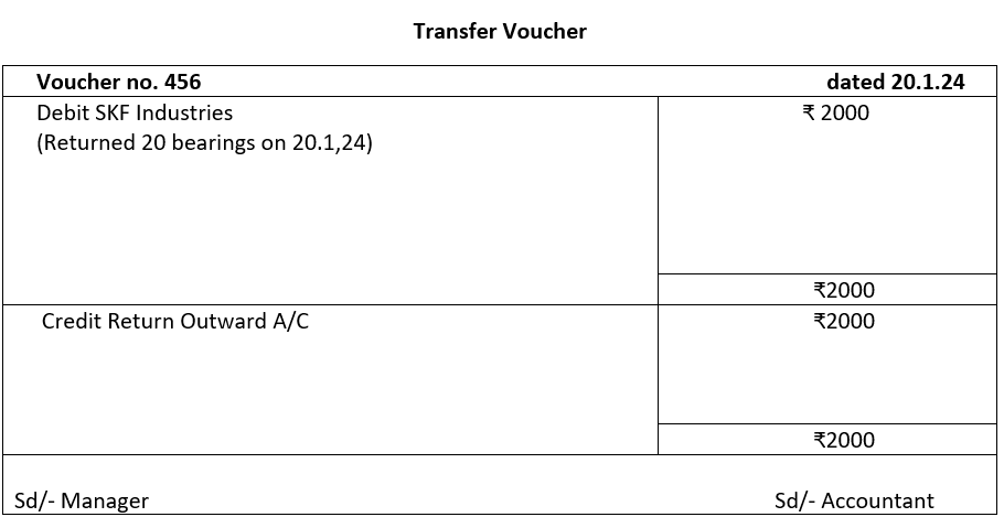Returned 20 ball bearings to SKF industries valued at ₹ 2000 dt.20.1.24