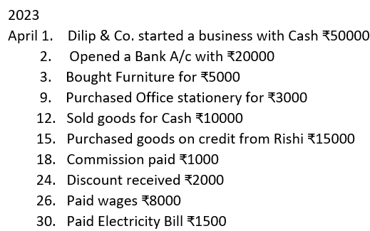 Transaction 1. Purchased steel bars worth ₹20000 on credit from Tata Sons