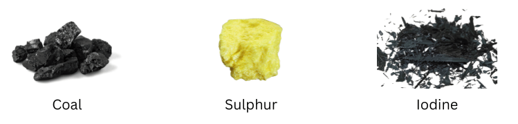 - Collect samples of carbon (coal or graphite), sulphur and iodine.