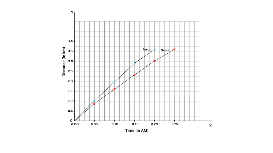 Time | Distance travelled by Feroz (km) | Distance travelled by Sania (km) |