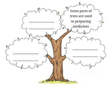 1. A tree is useful to us in many ways. Mention some of these uses. Write them in the picture given below.