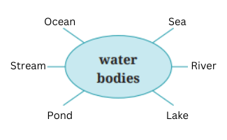 Complete the word web given below by writing which other water bodies you can think of.