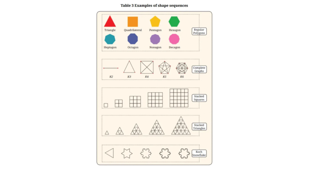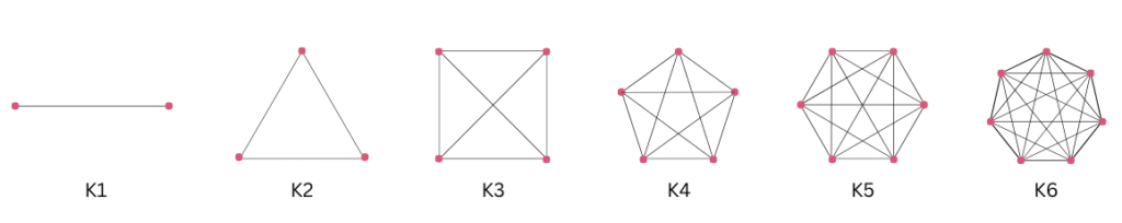 Complete Graphs: This sequence can be written as Kn, where n represents the number of vertices. All vertices of each shape are joined together.