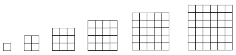 This gives us the Squares number sequence: 1, 4, 9, 16, 25, … The reason is that the smaller squares have been stacked to form larger perfect squares.