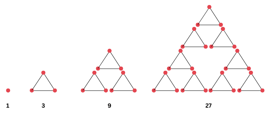 5. Can you think of pictorial ways to visualise the sequence of Powers of 2? Powers of 3?