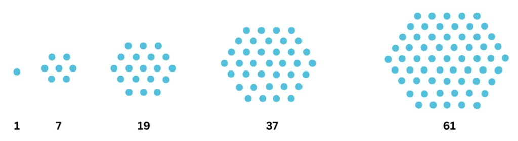 That’s right, they are called hexagonal numbers! Draw these in your notebook. What is the next number in the sequence?