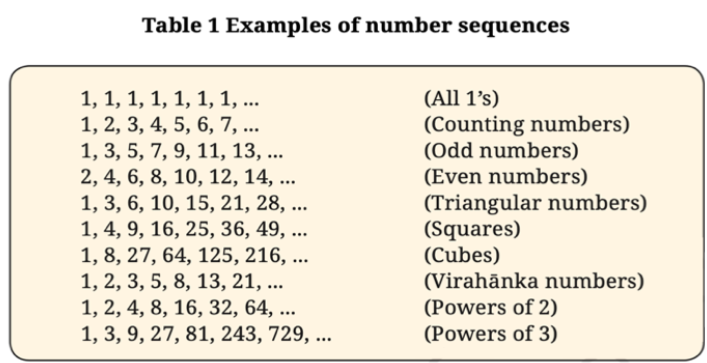 1. Can you recognize the pattern in each of the sequences in Table 1?