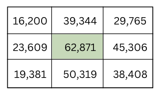 Once you have filled the table above, put commas appropriately after the thousands digit.
