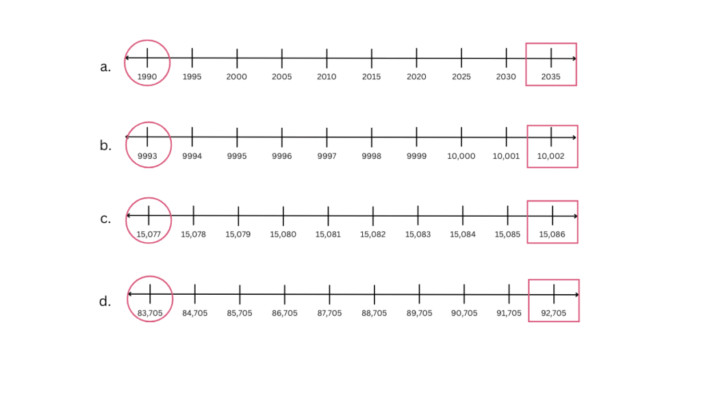 Put a circle around the smallest number and a box around the largest number in each of the sequences above.
