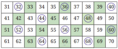 3. The numbers which are both shaded and circled are multiples of both 3 and 4.
