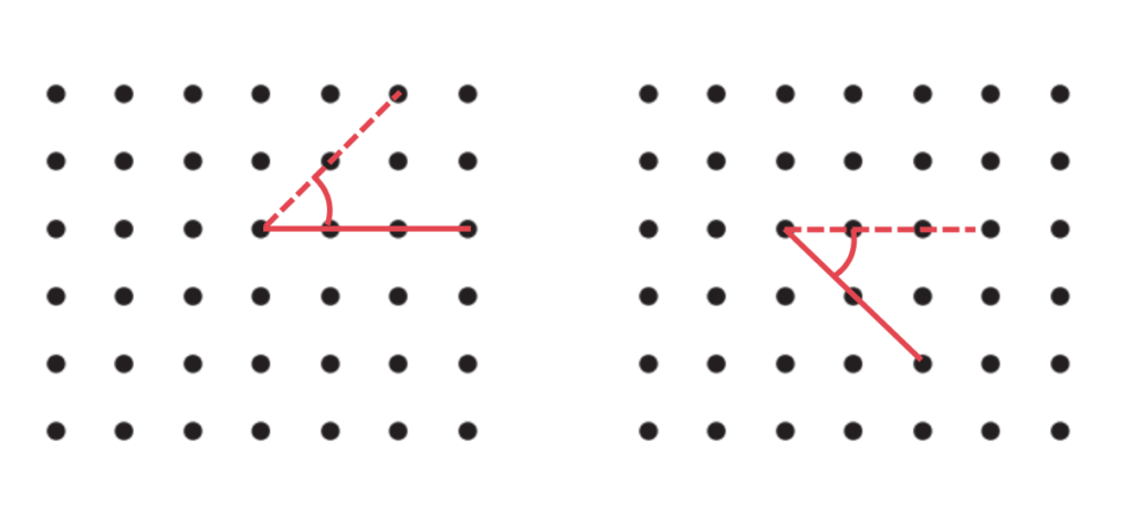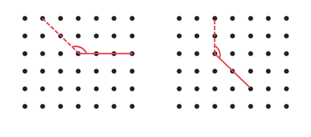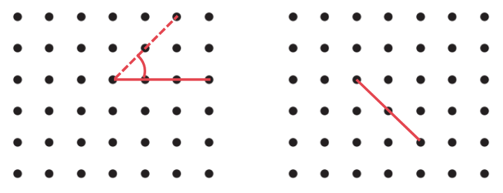 2. Join A to other grid points in the figure by a straight line to get a straight angle. What are all the different ways of doing it?