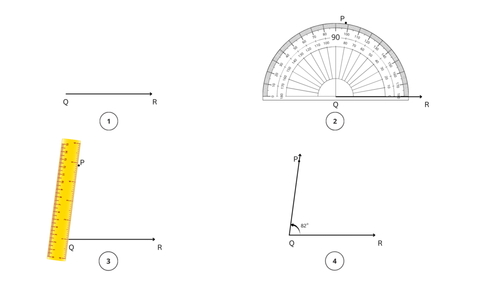 Step 4: Using a ruler join the points P and Q. ∠ABC = 82° is the required angle.