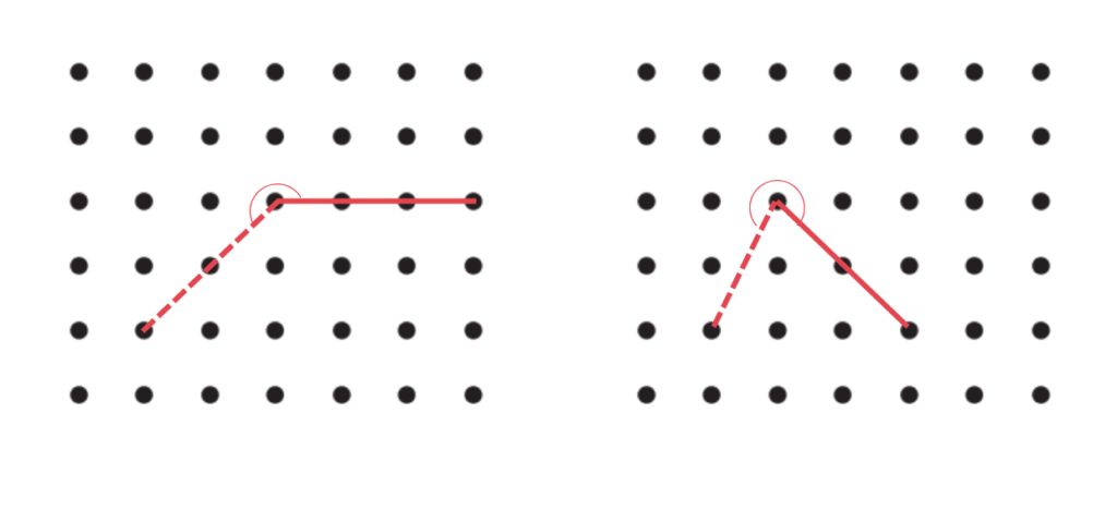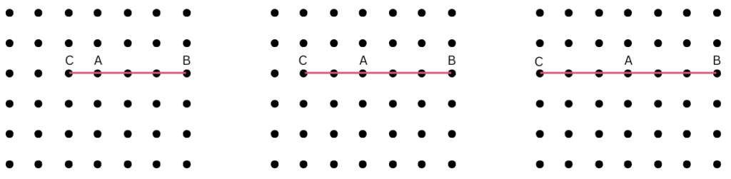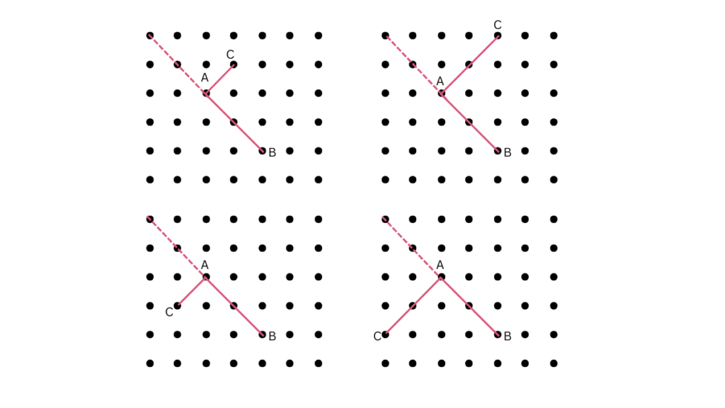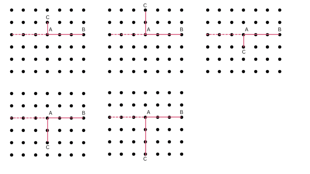 The different ways of joining A to other grid points in the figure by a straight line to get a straight angle are shown below: