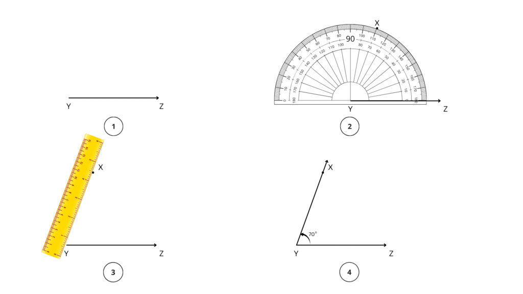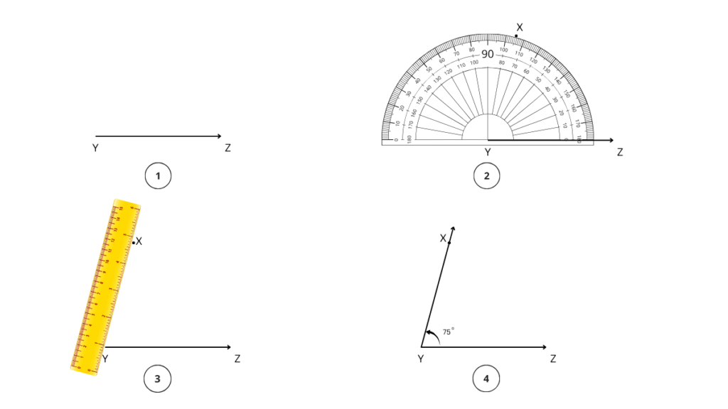 Step 2: We will place the centre point of the protractor on Y and align YZ to the 0 line.