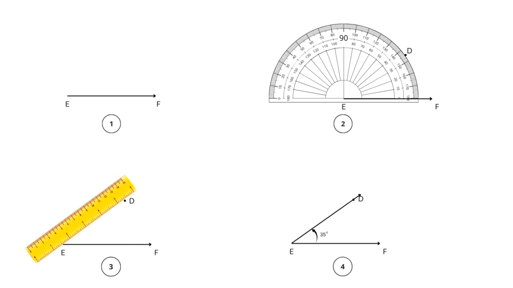 Step 4: Using a ruler join the points D and E. ∠DEF = 35° is the required angle.
