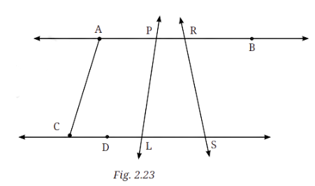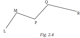 2. Name the line segments in Fig. 2.4. Which of the five marked points are on exactly one of the line segments? Which are on two of the line segments?
