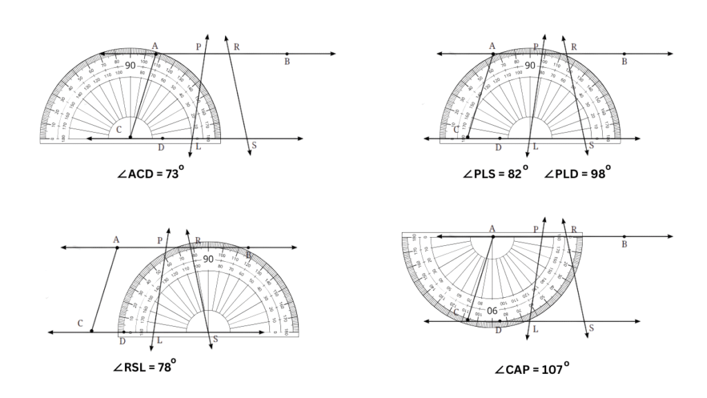 Step 2: Read off the values for ∠PTR, ∠PTQ, ∠PTW, ∠WTP.