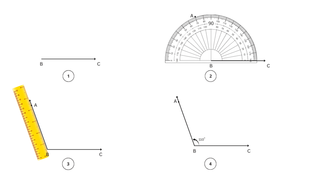 Step 6: We will place the centre point of the protractor on B and align BC to the 0 line.