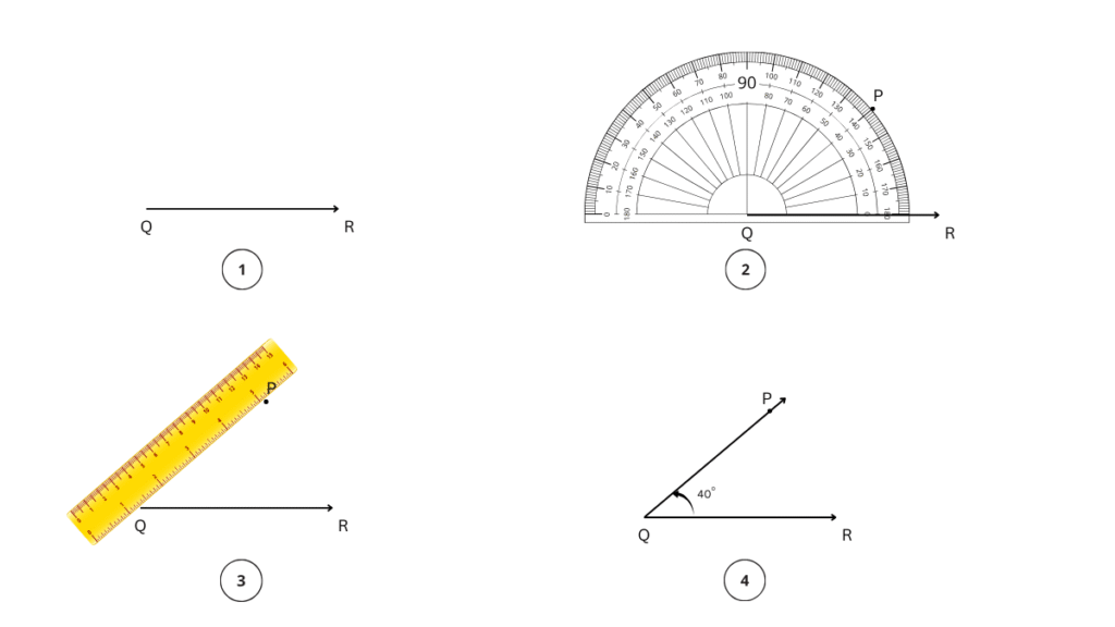 Step 4: Using a ruler join the point Q and P. ∠PQR = 40° is the required angle.