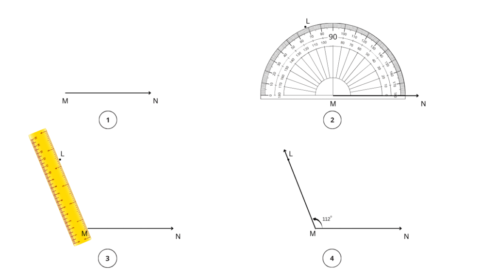 Step 4: Using a ruler join the point M and L. ∠LMN = 112° is the required angle.