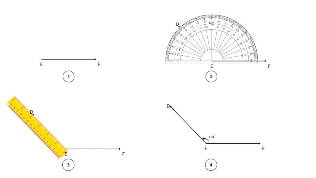 Step 4: Using a ruler join the point E and D. ∠DEF = 134° is the required angle.