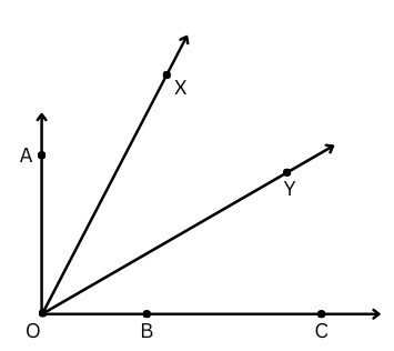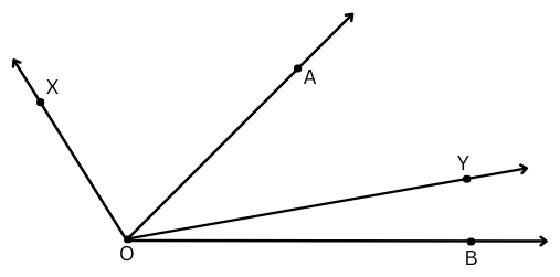 It is easy to see that ∠XOA opens wider than ∠YOB. Hence, ∠XOA < ∠YOB.