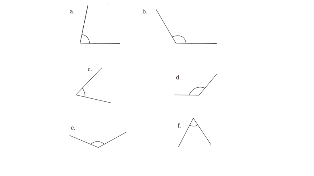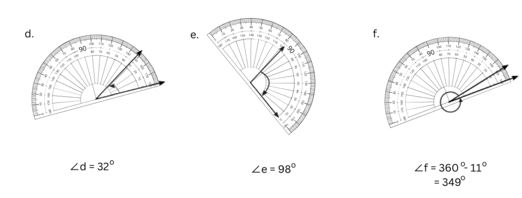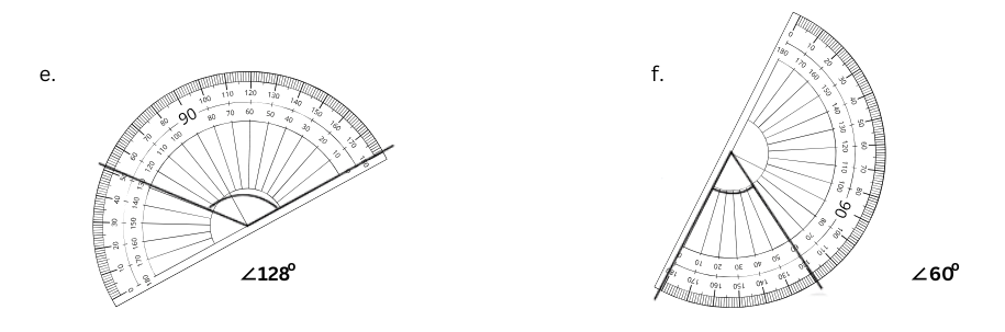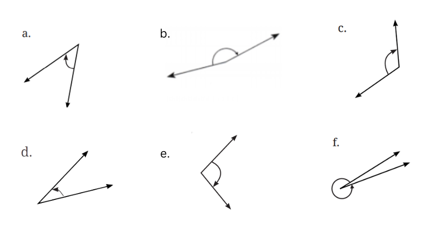 2. Use a protractor to find the measure of each angle. Then classify each angle as acute, obtuse, right, or reflex.