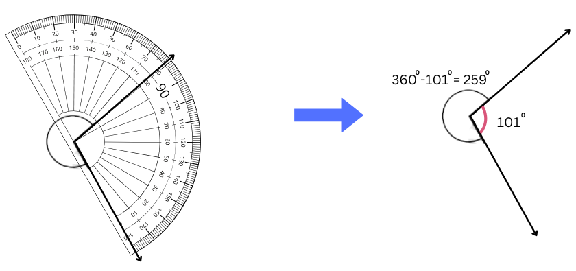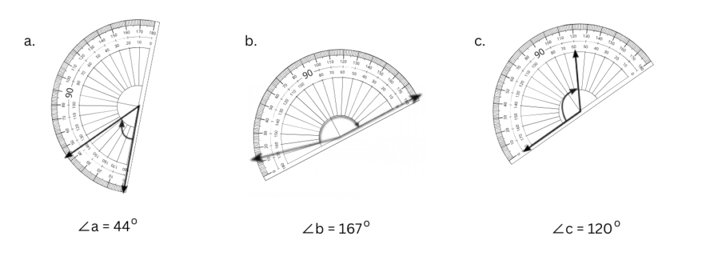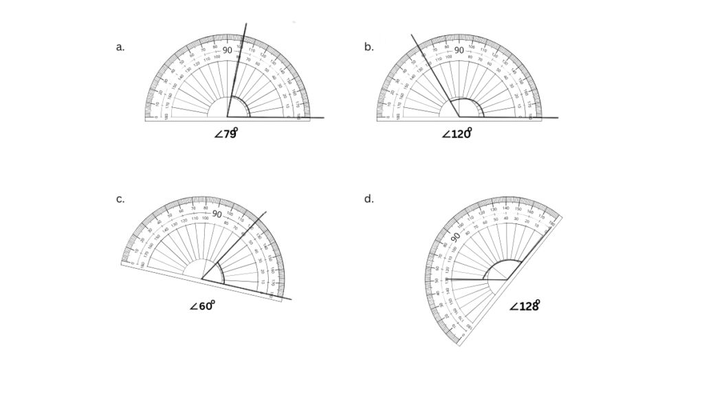 Step 3: Now, starting from 0, count the degrees where meets the dial of the protractor.