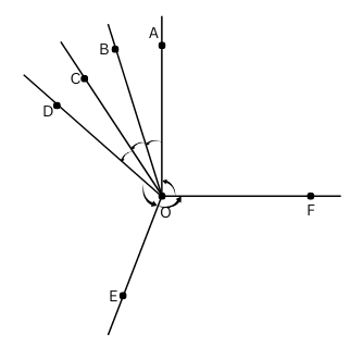 Acute angles: ∠AOC, ∠BOC, ∠COD