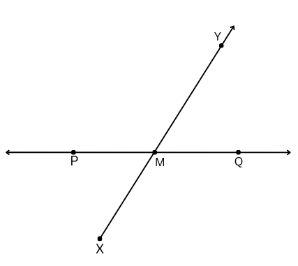 Points L and R are on exactly one of the line segments. Points M, P, Q are on two of the line segments.