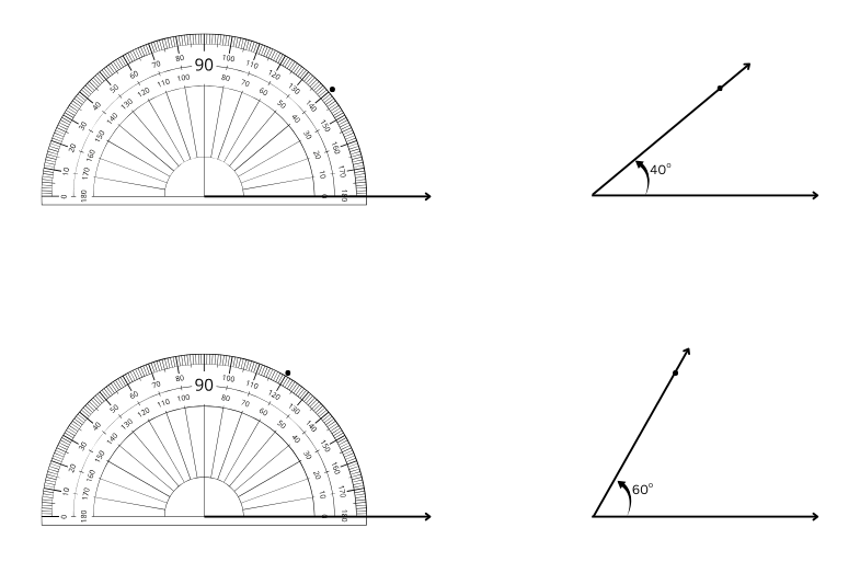 3. Draw an angle whose degree measure is the same as the angle given below:
