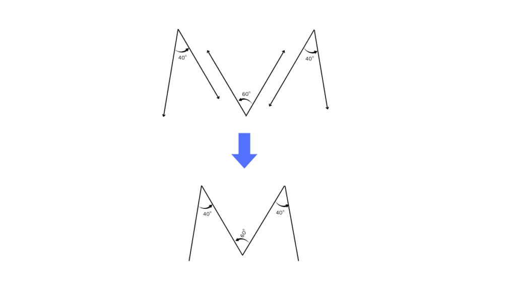 Then we realign them to form the letter ‘M’ such that the angles on the sides are 40° each and the angle in the middle is 60°, as shown below: