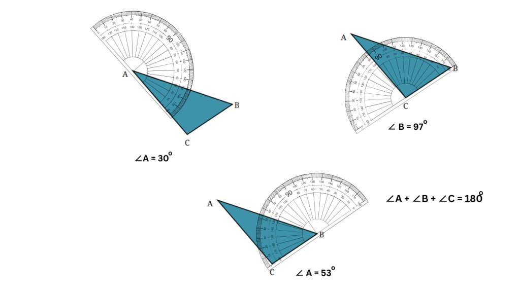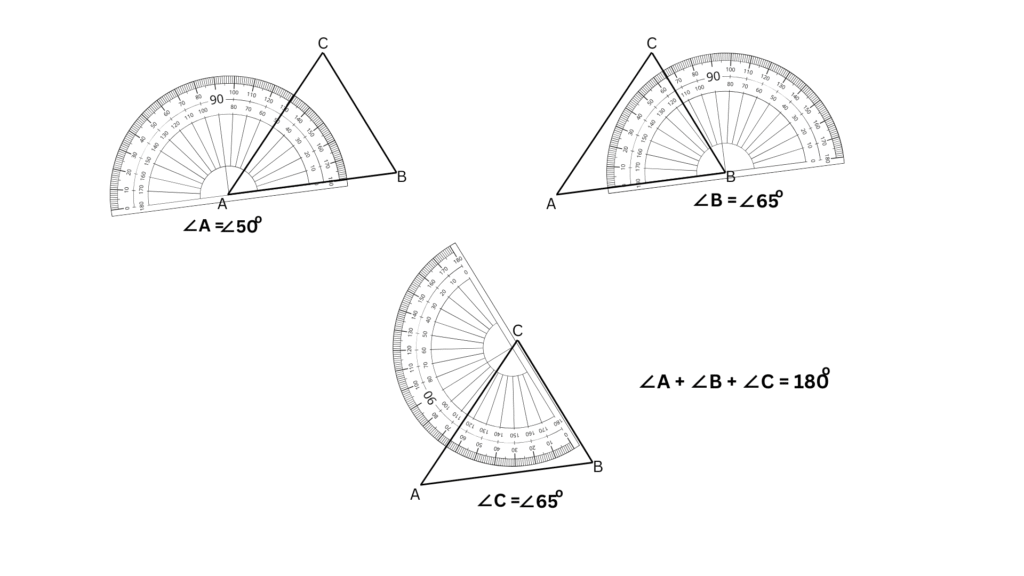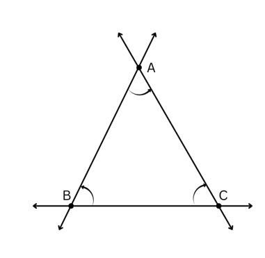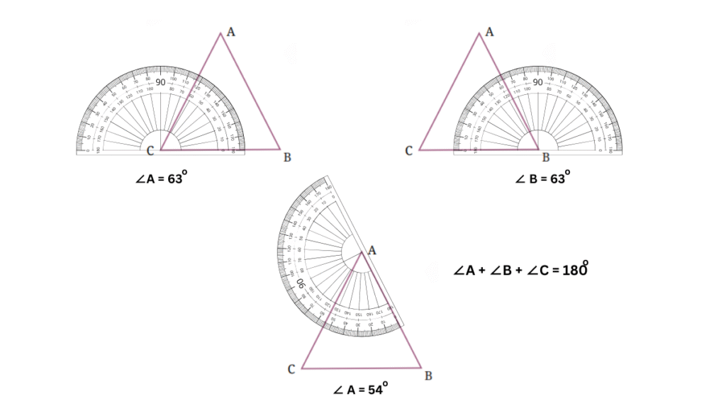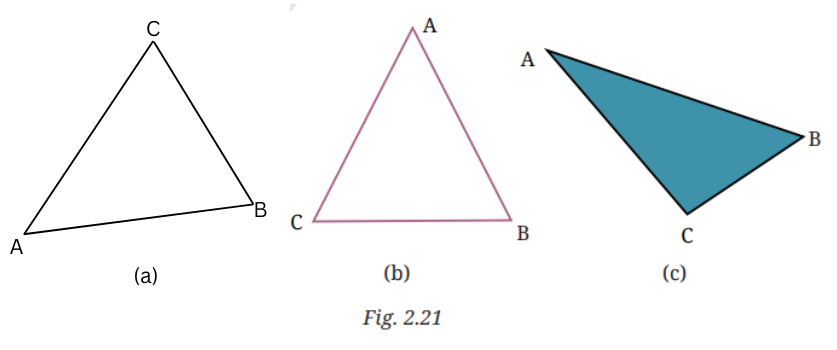 The angles that can be named using A, B and C are ∠ABC, ∠ACB and ∠BAC.