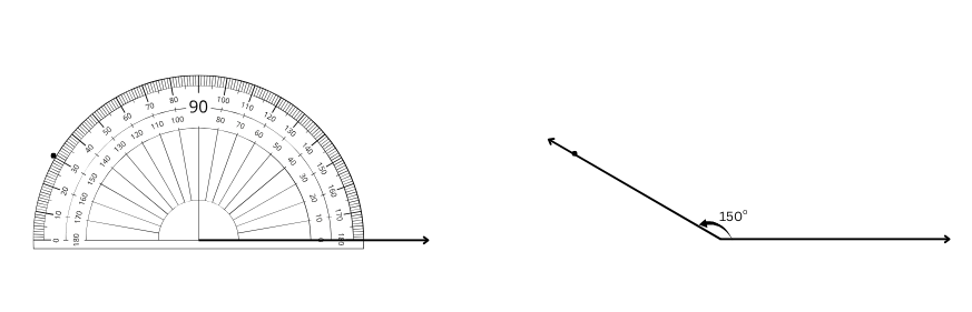 5. Draw the letter ‘Y’ such that the three angles formed are 150°, 60° and 150°.