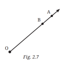 6. Here is a ray (Fig. 2.7). It starts at O and passes through the point A. It also passes through the point B.