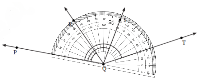 Step 1: We will place the centre point of the protractor on T and align TP to the outer 0 line.
