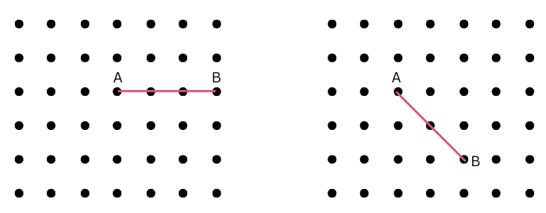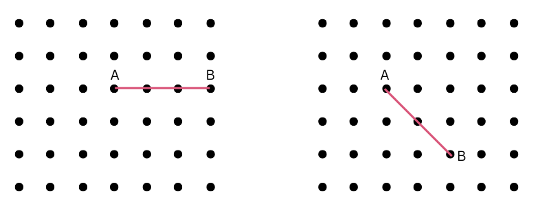 1. In each of the below grids, join A to other grid points in the figure by a straight line to get: